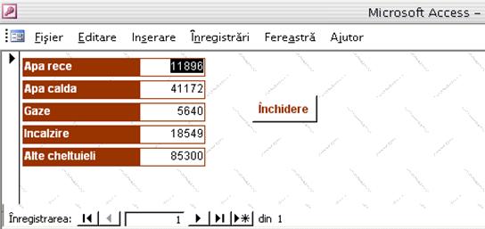 Aplicatia este formata din tabele, interogari, formulare si rapoarte.