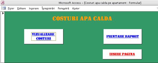 "Apa calda pe apartament" - Constituie interfata grafica in momentul afisarii costurilor la apa calda pentru fiecare apartament si de asemenea, o pagina cu aceste costuri, ce poate fi imprimata.