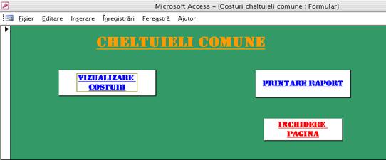 "Costuri cheltuieli comune" - Creaza interfata grafica pentru o fereastra secundara din meniu destinata afisarii ai imprimarii cheltuielilor comune pe care le are fiecare apartament de platit.