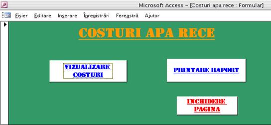 Apa rece pe apartament" - Constitue interfata grafica in momentul afisarii costurilor la apa rece pentru fiecare apartament si de asemenea, o pagina cu aceste costuri, ce poate fi imprimata.