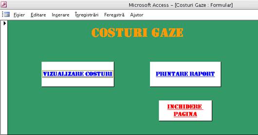 "Costuri gaze" - Creaza interfata grafica pentru o fereastra secundara din meniu destinata afisarii si imprimarii costurilor la gaze fiecare apartament in parte.