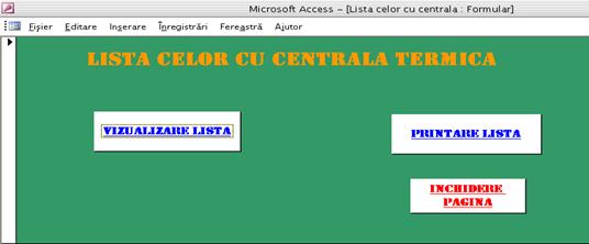 Dupa terminarea tuturor operatiilor, daca se doreste iesirea din aplicatie se face click pe butonul "INCHIDERE PAGINA" din fereastra pricipala (Fig. 5). Astfel se va reveni la fereastra din fig. 4, de unde, prin executarea unui click pe butonul "INCHIDERE", se iese total din aplicatie.
