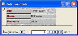 in fereastra aparuta se pot introduce, modifica, sterge date din tabela corespunzatoare formularului