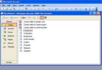 In acest mod avem acces la fereastra bazei de date Northwind (figura 6) si putem vedea cum aceasta functioneaza.