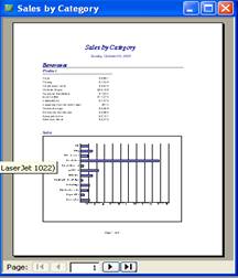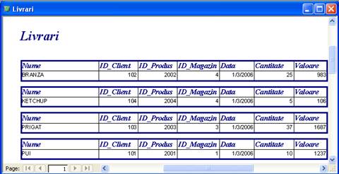 Pentru pozitionarea pe o anumita pagina a raportului se utilizeaza bara de navigare din partea de jos a ferestrei de dialog: