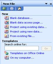 sa creem o baza de date noua prin selectarea butonului New din bara de butoane a bazei de date sau din panoul de sarcini Open daca aceasta este activ;
