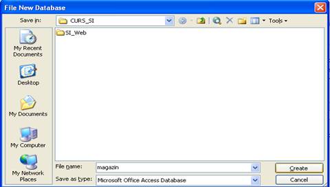 Pentru crearea unei baze de date goale se selecteaza optiunea: