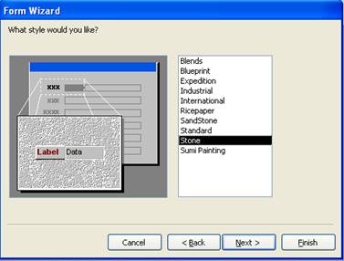 Cadrul formulelor se creaza simplu folosind programul ajutator wizard prin selectarea optiunii a doua Create form by using wizard.