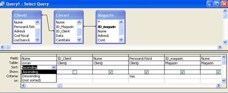 c) pe randul al treilea, zona Sort se specifica tipul de sortare ascendant, descendent sau fara sortare;