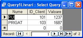 3. Inchiderea interogarii: din bara de titlul a tabelei se da click pe butonul de inchidere sau din bara de meniuri Access se alege File/Save As.