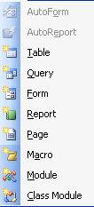 In fereastra de dialog a bazei de date sunt cele patru obiecte Tables, Forms, Queries si Reports cu ajutorul carora realizam aplicatiile. Accestea vor fi accesate in ordinea prezentarii.