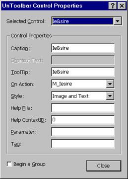 n pentru argumentul Toolbar Name se alege numele toolbarului / barmeniului de afisat