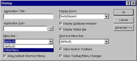 Ms Access permite inzestrarea aplicatiilor cu barmeniuri si / sau toolbaruri create de utilizator. De asemenea, permite inhibarea barmeniurilor si toolbarurilor predefinite sau afisarea lor concomitent cu a celor create de utilizator.