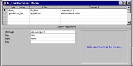 se afiseaza coloana Macro Name in panelul superior al ferestrei Design a macrocomenzii