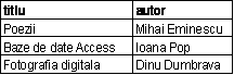 pe primul rand sunt trecute domeniile care apartin tabelei (titlu, autor)