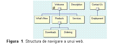Puteti crea o structura pentru web-ul curent prin organizarea paginilor in vederea Navigation. Cand intr-un web adaugati paginilor bare de derulare, FrontPage stabileste fiecare bara de navigare in concordanta cu aceasta structura. Structura de navigare determina ce hiperlegaturi se pun pe bara de navigare, iar titlurile paginilor determina etichetele pentru hiperlegaturi: