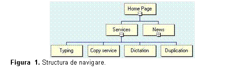Sa consideram ca exista urmatoarea structura de navigare (vezi figura 12), in care paginile Services si News sunt pagini de acelasi nivel, iar pagina Services are patru pagini copil.