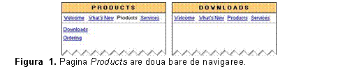 Barele de navigare pot folosi butoane de comanda (ca in figura 10) sau hiperlegaturi text. De exemplu, bara de navigare din figura 1 poate fi afisata si sub forma de text:
