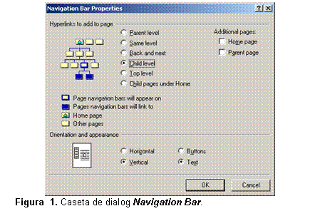 2. Deschideti meniul Insert si selectati optiunea Navigation Bar. Apare caseta de dialog Navigation Bar Properties (vezi figura 19).