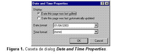 2. Deschideti meniul Insert si selectati Date and Time. Apare caseta de dialog Date and Time Properties (vezi fig. 2).