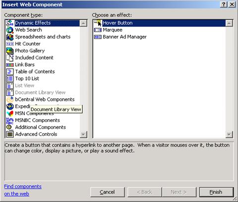 Pe langa text si imagini, FrontPage mai permite adaugarea si a altor obiecte, utilizad InsertWeb Component: