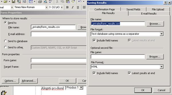 - trimiterea rezultatelor in baza de date - este o imbunatatite a salvarii rezultatelor sau datelor din formulare, descrisa mai sus. Aceasta facilitate adauga datele din formular direct intr-o tabela a unei baze de date si nu intr-un fiser text sau de tip pagina web;