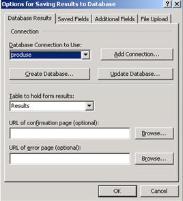 Send to Database - datele sunt adaugate intr-o baza de date disponibila serverului de web. Aceasta poate fi o baza de date Microsoft Access care rezida in serverul de web sau orice alt tip de baza de date care se poate accesa prin Open Database Connectivity (ODBC).