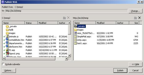 - Page Level Control Over Publishing - ofera un indicator de tip se publica / nu se publica pentru fiecare fisier dintr-un site web bazat pe FrontPage. Este util in cazul in care numai anumite portiuni dintr-un site sunt pregatite pentru publicare;
