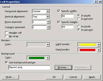 De asemenea, se pot utiliza si imagini in fundalul tabelelor. Culorile si imaginile de fundal pot fi utilizate atat pentru intregul tabel cat si pentru fiecare celula in parte;