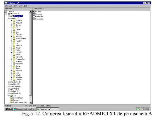 Copieri de fisiere si foldere Copierea de fisiere si foldere se poate efectua usor prin aplicatia Windows Explorer utilizand tehnica drag and drop. Aceasta modalitate de lucru presupune utilizarea mouse-ului pentru deplasarea obiCiteste tot ... 2352 cuvinte