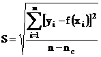 unde n reprezinta numarul de puncte experimentale, xi si yi coordonatele acestora, f forma functiei de regresie studiate iar nc numarul de coeficienti ai acesteia.