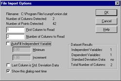 Daca fisierul cu date contine mai multe coloane, utilizatorul va trebui sa le specifice pe cele care contin coordonatele punctelor experimentale. Cele doua coloane trebuie sa fie succesive iar coordonatele X sa se afle in prima dintre acestea.