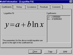 Daca se doreste salvarea atat a datelor cat si a unor informatii referitoare la o anumita forma de functie de regresie studiata, prin alegerea comenzii Export din submeniul mentionat anterior (figura 2.8) se ofera posibilitatea stocarii intr-un fisier de tip ASCII a valorilor coeficientilor functiei de regresie, coeficientului de corelatie si ale unor indicatori statistici referitori la datele experimentale. |