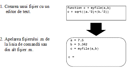 Fisierul .m poate fi creat cu un editor de text si apoi poate fi folosit ca orice functie sau comanda MATLAB: