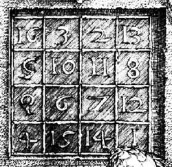 Matricea respectiva este cunoscuta sub numele de patrat magic si in timpul lui Drer se considera ca are proprietati magice.