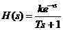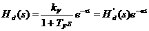 Se considera un proces de ordinul intai cu timp mort reprezentat prin urmatoarea functie de transfer: