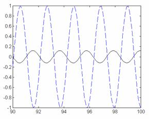 axis([90, 100, -1, 1])