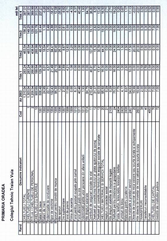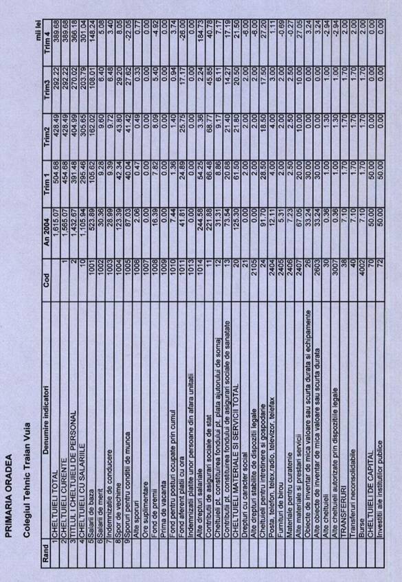 Mentionez ca nu m-am oprit si la bugetul general de venituri si cheltuieli anuale, considerand ca acest lucru ar necesita o intindere si desfasurare mai ampla, putand constitui ca atare subiect aparte pentru o astfel de lucrare.