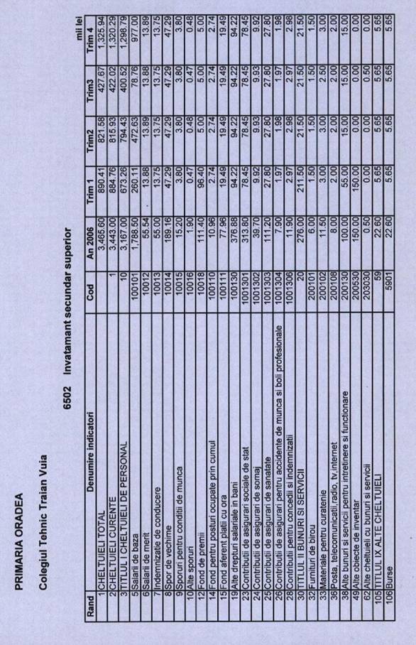 propriu, cate un buget pentru fiecare din unitatile de invatamant arondate,