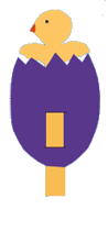 Pasul 1 Imprima modelul la fel ca in imagine : oul pe hartia violeta si puiul pe hartia galbena sau imprima aceste modele pe hartie alba. |