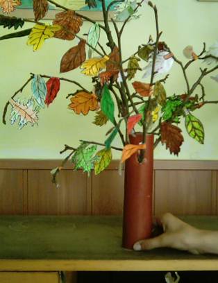 Neavand prea mult timp la dispozitie, noi am lucrat pe echipe. Vom folosi copaceii la realizarea machetei "Toamna" (lucrare colectiva).
