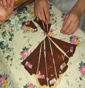 Se intind cu merdeneaua se suprapun , se taie triunghi se umple sau nu , se