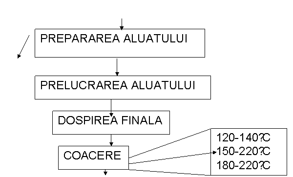 -coacerea produsului se face mai intai la o temperature de 120˚ C ,iar apoi la o temperature de 250-220 ˚C scazand spre sfarsit la 180˚ C pentru a se realize o coacere uniforma;