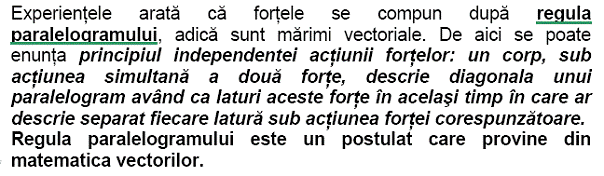 Procedand astfel, profesorul de fizica a pus la indemana elevilor doua metode de a gasi rezultanta a doua forte concurente perpendiculare: grafic, cu regula paralelogramului si prin calcul cu ajutorul legii lui Pitagora. Este de la sine inteles ca, abordata interdisciplinar de catre profesorul de matematica, chestiunea in cauza capata profunzime.