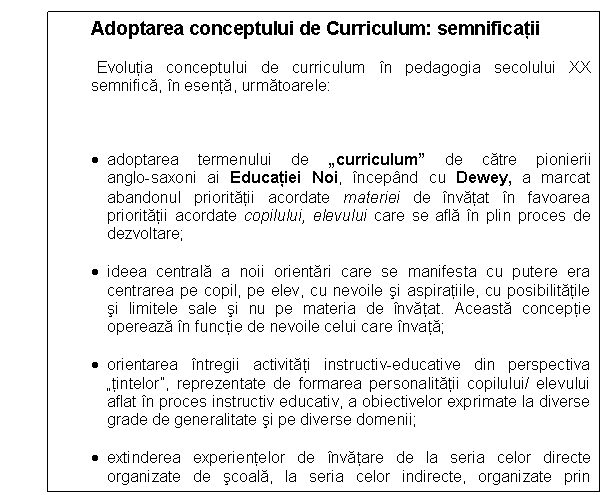"Curriculum reprezinta un concept cheie nu numai in stiintele educatiei, dar si in cadrul practicilor educationale contemporane.