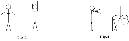 cap, iar bratul drept indoit cu palma la spate (fig.1)