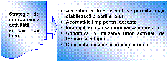 - Formeaza un set de reguli de lucru in comun, care odata adoptat, este
