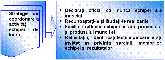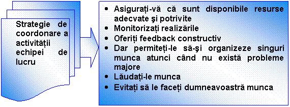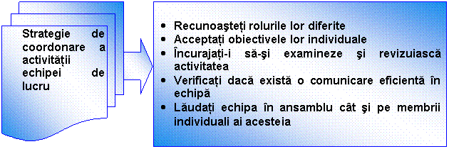 - Adopta obiective cunoscute si urmate de toti membrii echipei;