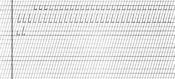 1. Scrie dupa dictare, lasand un spatiu liber intre semnele grafice: zala mica, noduletul mare, o linie oblica pe un spatiu, bastonas pe un spatiu cu intorsatura in sus, o linie oblica subrand, zala mare, bucla mica, bastonas suprarand cu intorsatura in jos, bucla mare, biciul, noduletul mic, bastonas suprarand cu intorsatura in sus, bastonas pe un spatiu cu intorsatura in jos, linie oblica suprarand, oval, semioval cu deschidere spre dreapta, carlig, semioval cu deschidere spre stanga, nodulet mare. |