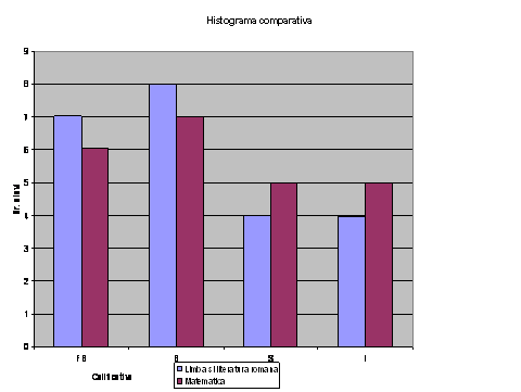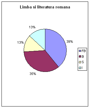 La limba si literatura romana rezultatele au fost : FB - 7 elevi, B - 8 elevi, S - 4 elevi si I-4 elevi.